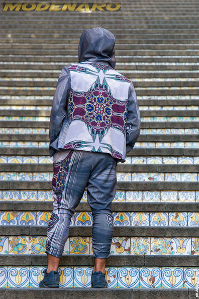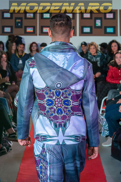 The quantum collection promotes innovative perception, encourages the subject to observe, and focuses on an ever-changing receptive mind that is moving forward compared to time. The emergence of a trend and the introduction of new fashion solutions is the result of the creative activity and research process of both designers with their main activity - "quantum art". The collection in most models is unisex designed by two designers: Roberto Denti and Natalia Morozova.