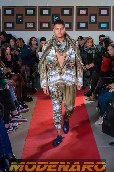 The collection is made of Italian fabrics, modeled and sewn at the Soul Service sewing factory in Carpi, Modena province, Emilia-Romagna region. The factory's technologists are known for their skillful implementation of the basic idea of modeling. The prints were produced at the SoloModa factory in Italy, in the city of Como, known worldwide for its art of innovative printing on fabrics.